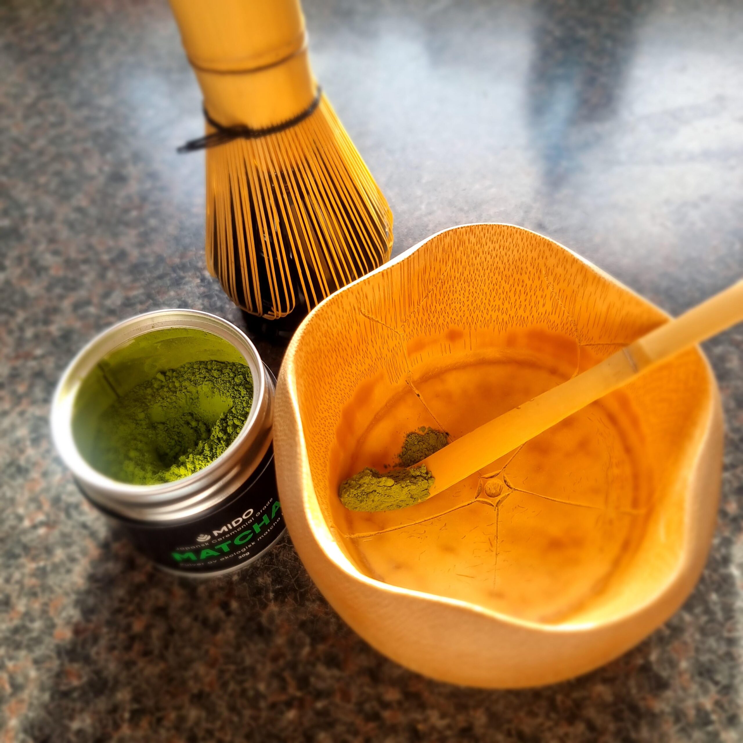 ✔ Bambusskje (Chashaku) – Gjør det enkelt å måle opp riktig mengde matcha.