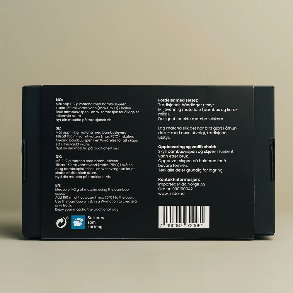 Vil du lage ekte japansk matcha på den tradisjonelle måten? Mido Matcha Sett gir deg alt du trenger for å lage en perfekt kopp matcha, enten du er nybegynner eller allerede en matcha-entusiast.