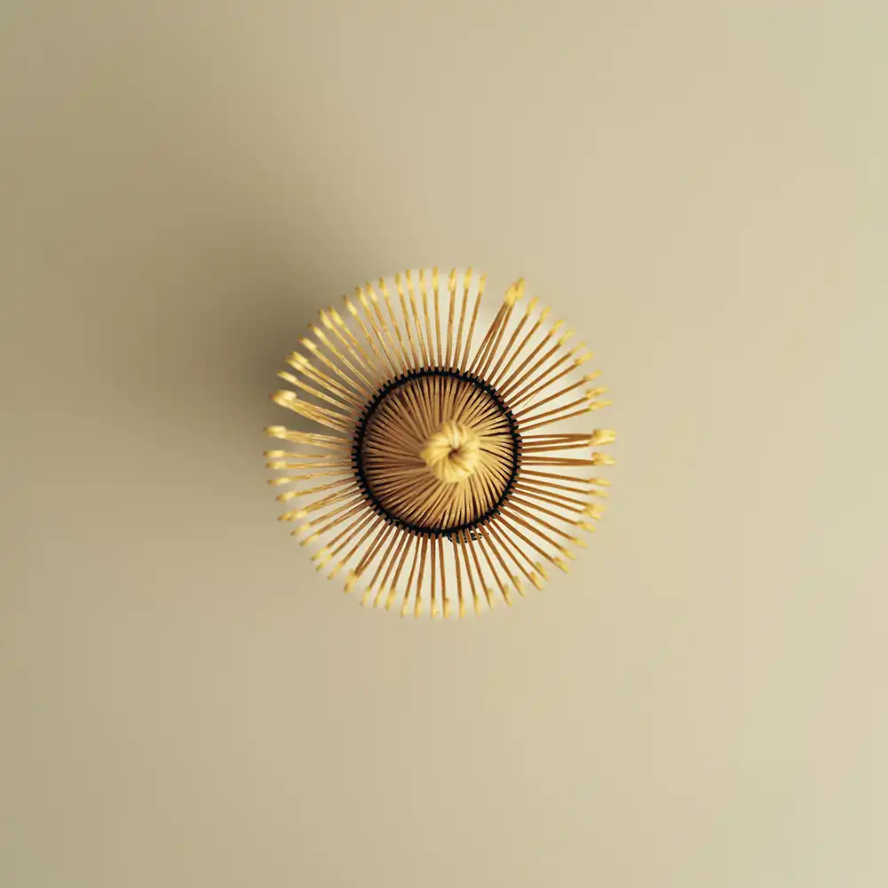 ✔ Keramisk vispholder – Bevarer formen på bambusvispen og forlenger levetiden.