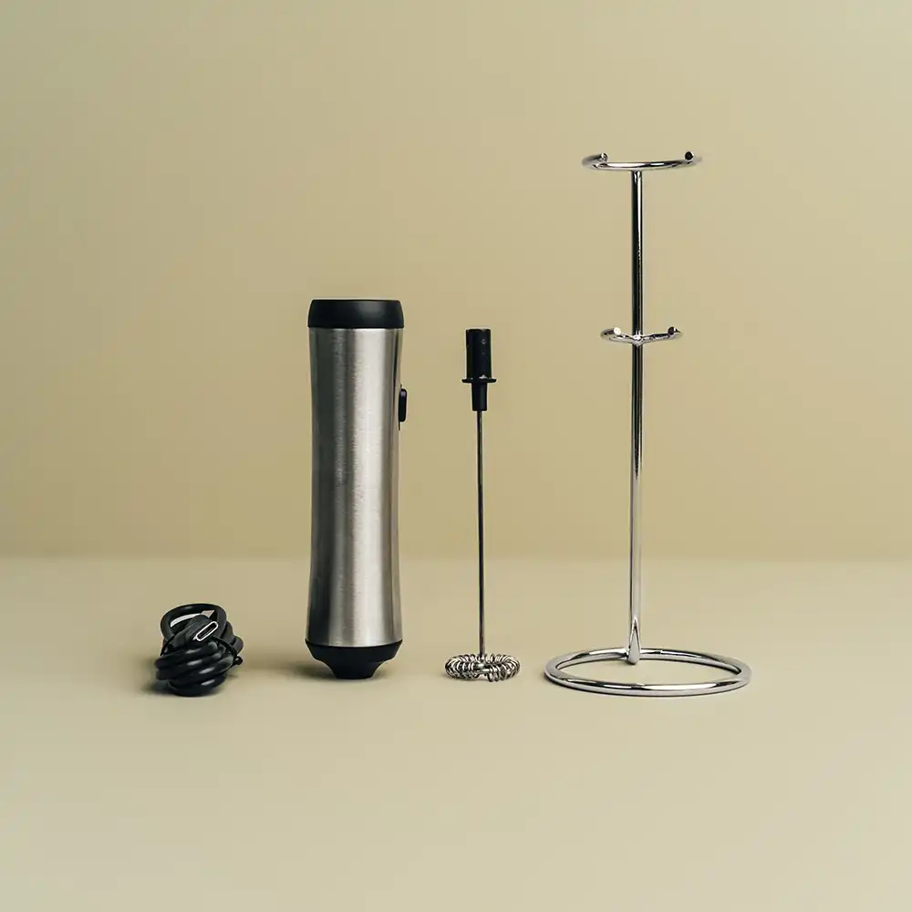 Funksjonell og effektiv visp. Bruker den for å skumme melken.