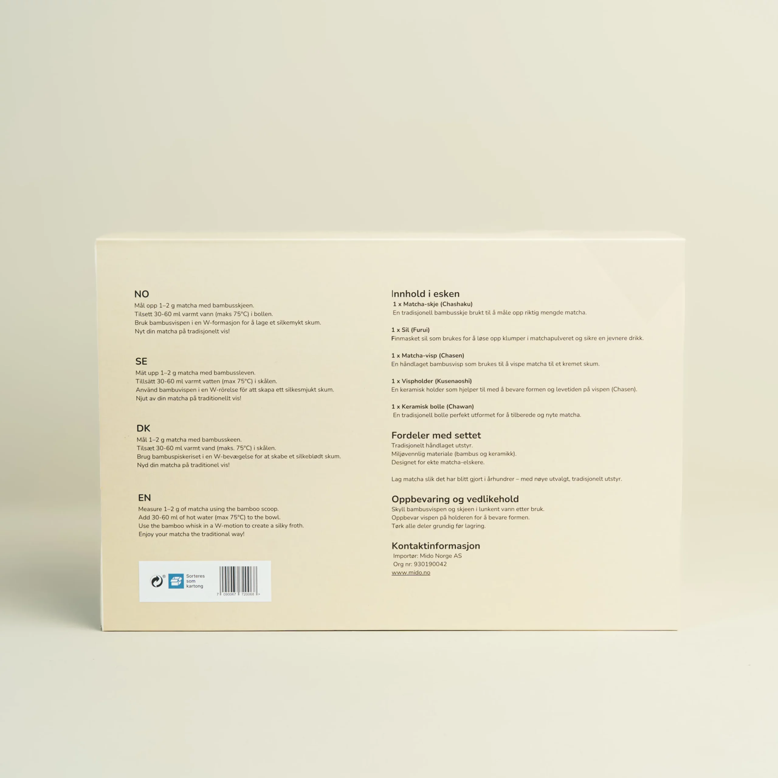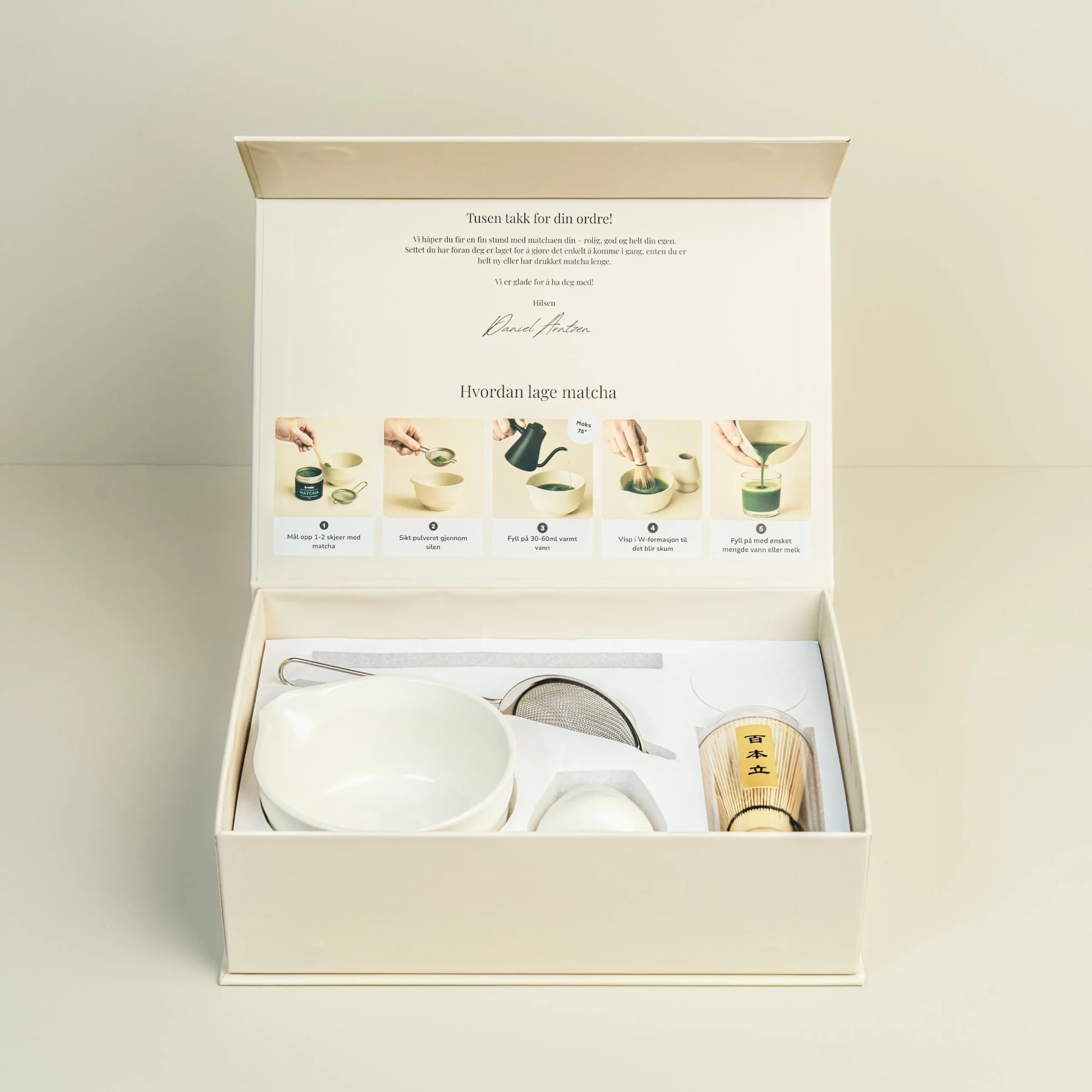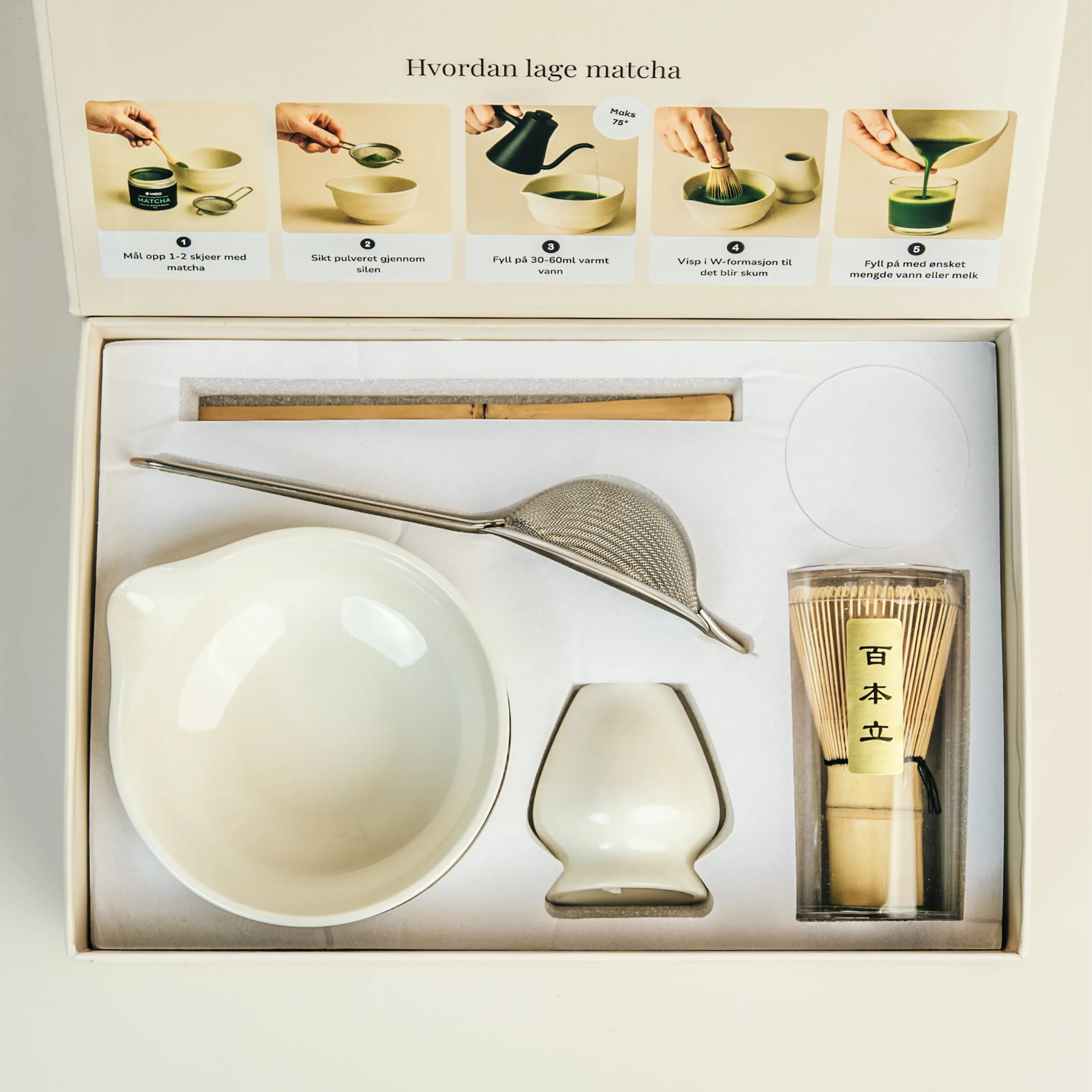 Enten du drikker matcha daglig eller vil gjøre matchastunden til en liten seremoni, gir dette settet deg den beste opplevelsen – med kvalitetsmaterialer som både ser bra ut og fungerer optimalt.